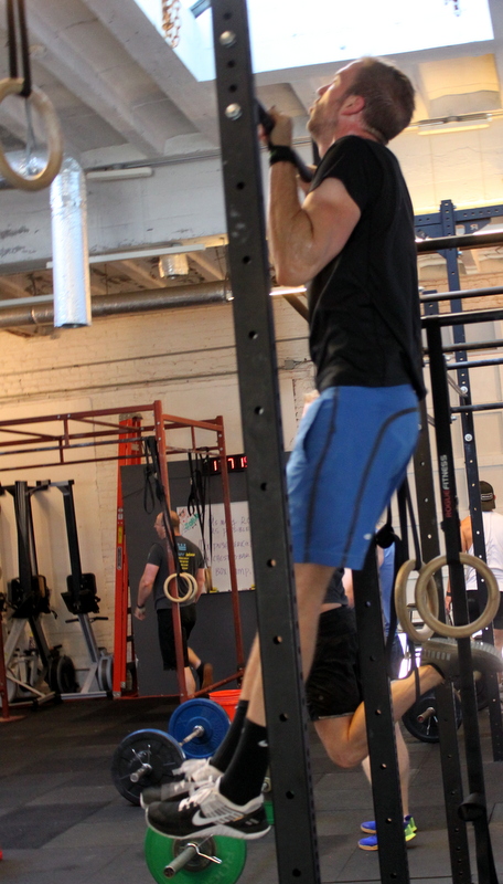 every minute, on-the-minute, for 10 minutes: L-sit legless rope climb, 12-ft. (seated start) then, power clean 3-3-3 Compare results to April 22, 2017.