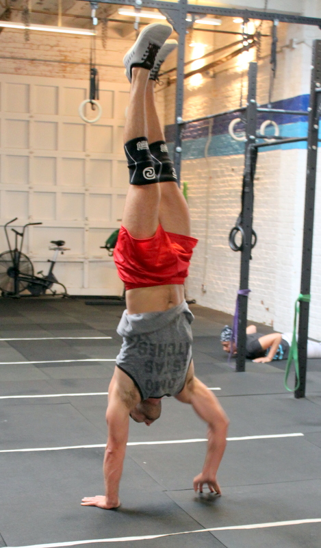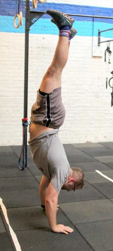 “Maggie” five rounds for time: 20x handstand pushup 40x pull-up 60x single-leg squat (alternating, total) workout courtesy of crossfit.com
