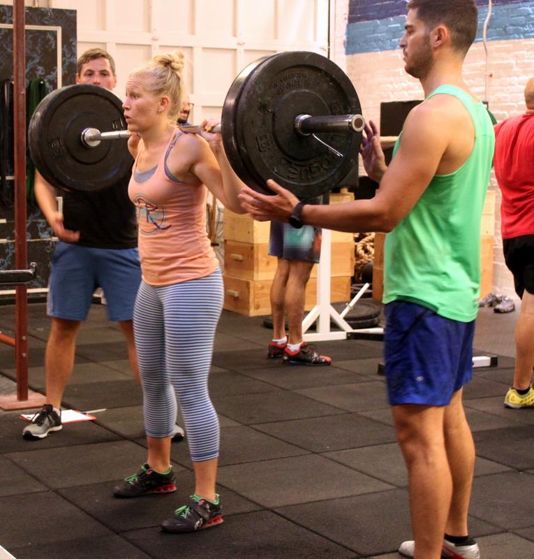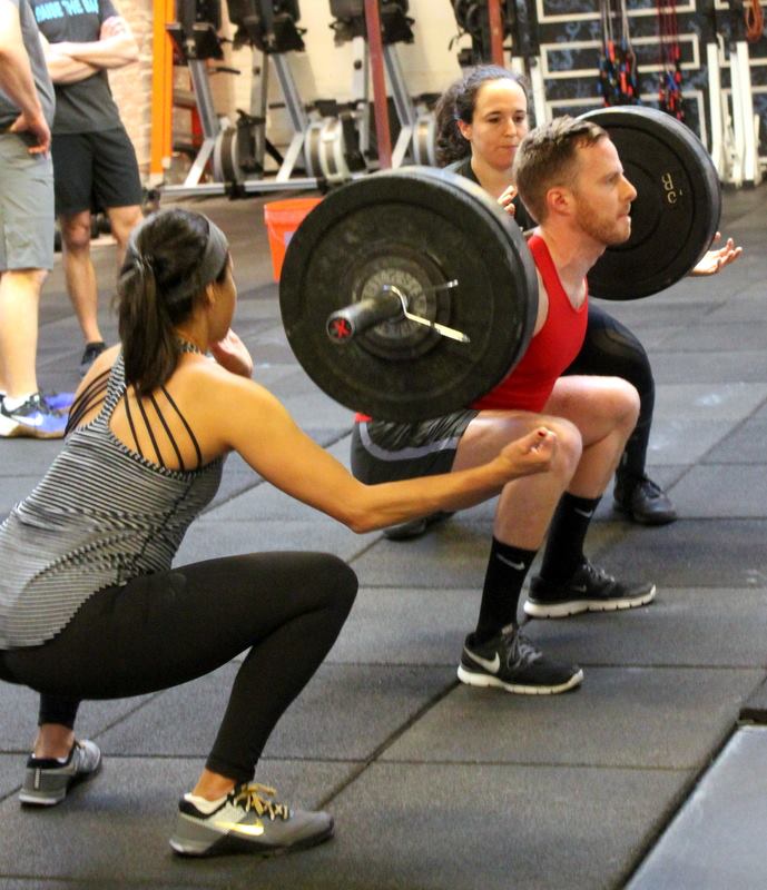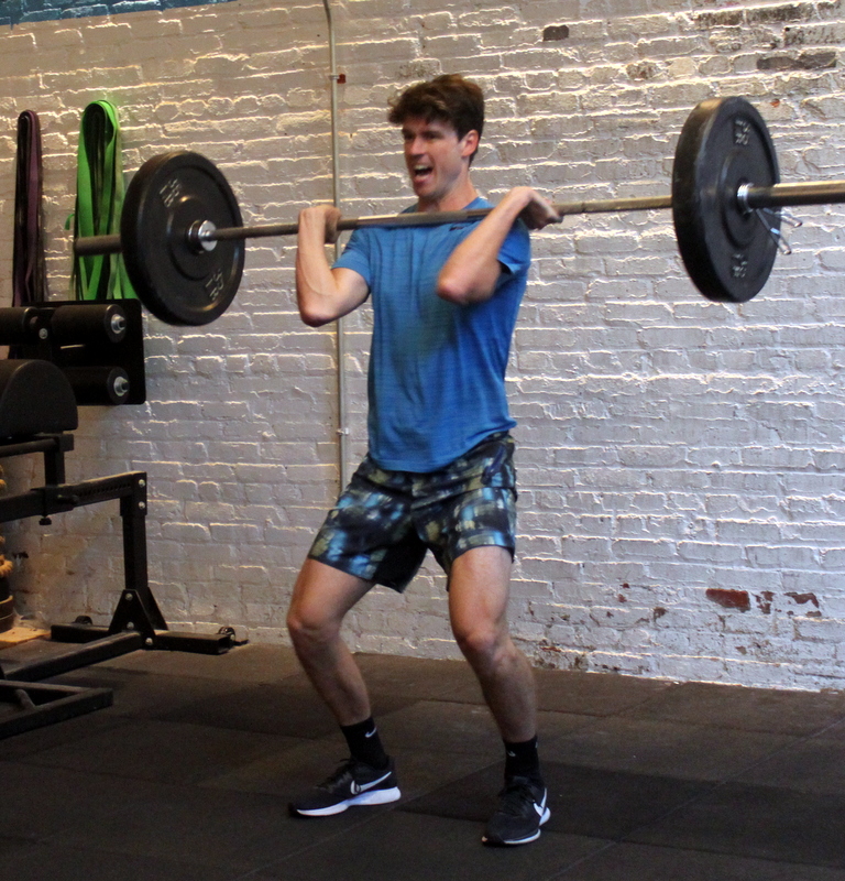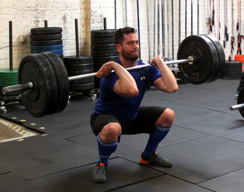 three rounds for time: 10x hang power snatch @ 95/65-lbs. –or– 20x single-arm dumbbell/object snatch 20x front squat –or– 20x dumbbell/object squat 400m run –or– 100x jumping jack