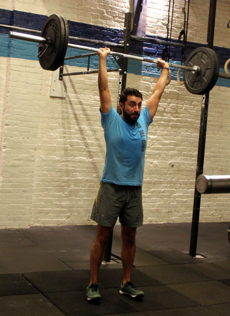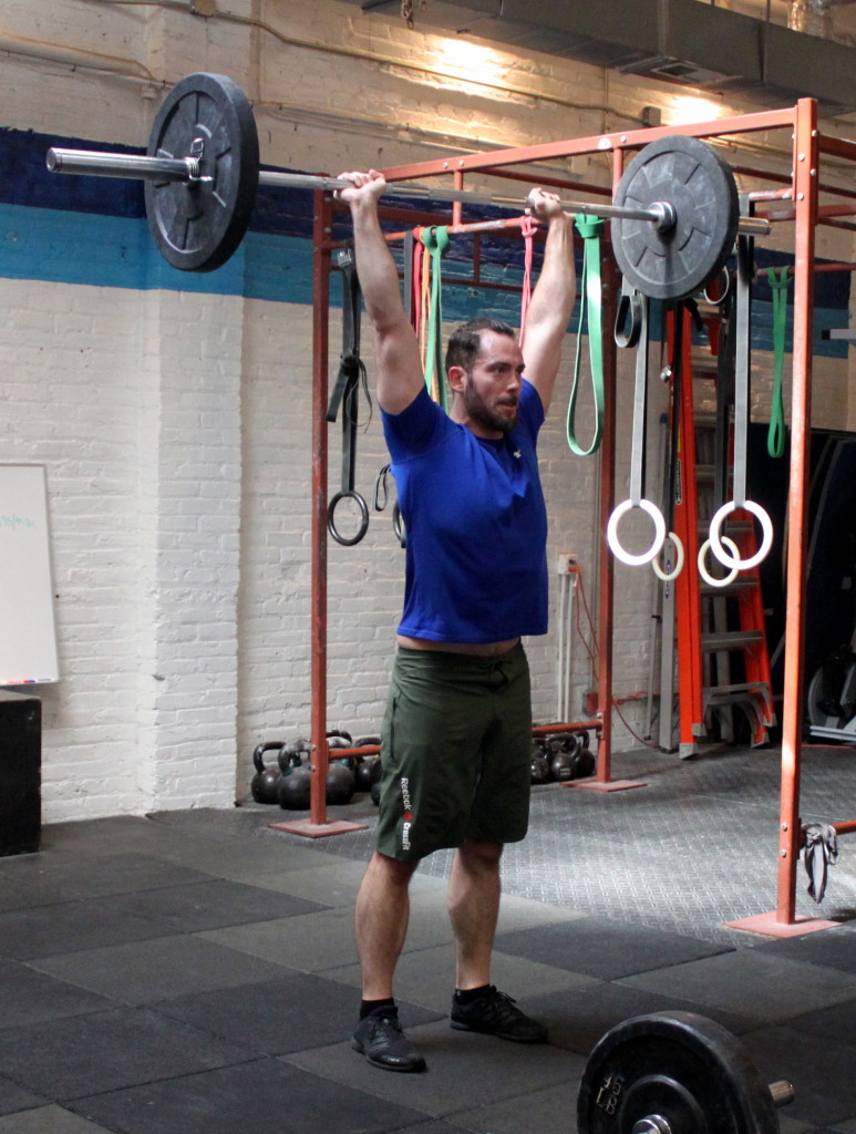 five rounds for time: 7x power snatch @ 115/75-lbs. 7x overhead squat 10x box jump, 24/20″ platform five rounds for time: 7x standing long jump, 6-ft. 14x squat jump 20x walking lunge Post score to comments.