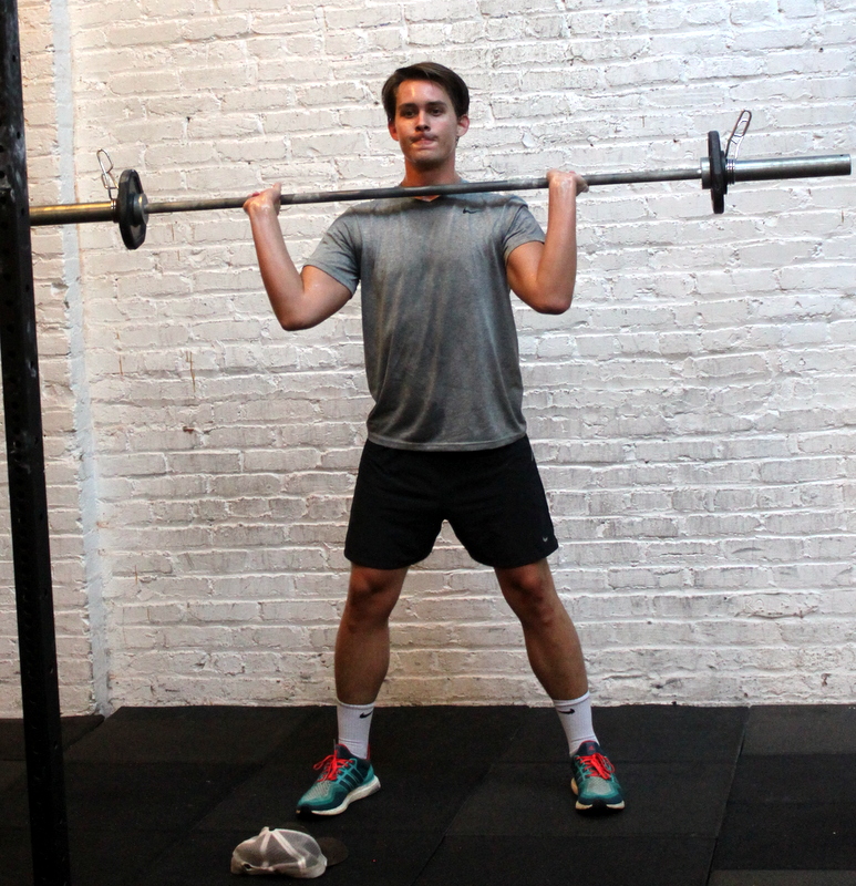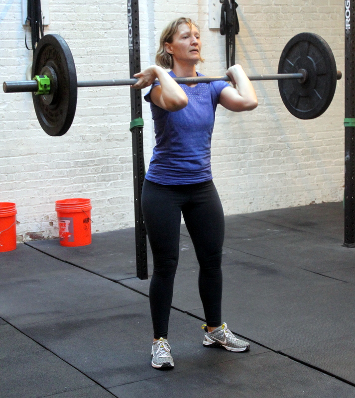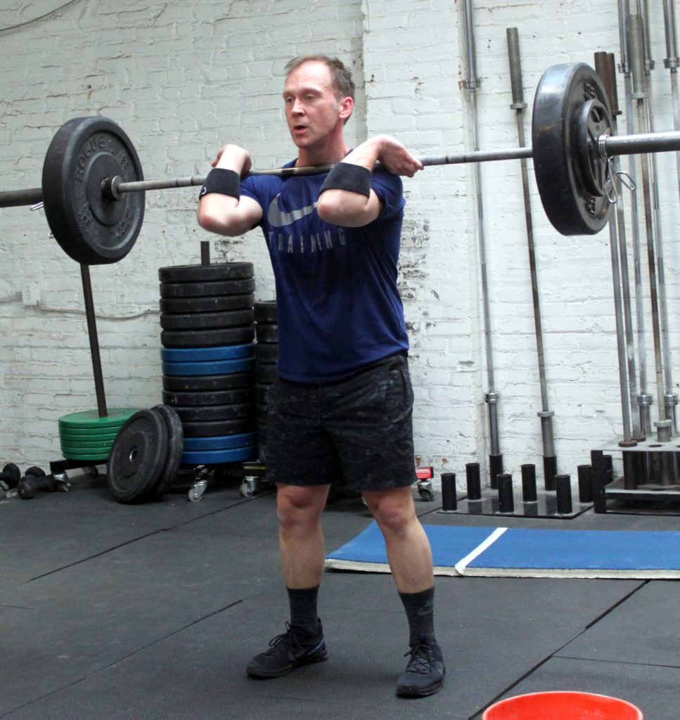 In Gym: front squat 5-5-5-5-5 *Begin each round every three minutes. thruster 5-5-5-5 *Begin each round every three minutes. At Home: five rounds for time: 10x object front squat–or– 20x bodyweight Bulgarian split squat 10x object thruster –or– 20x squat jump 10x object renegade row –or– 30x bodyweight renegade row
