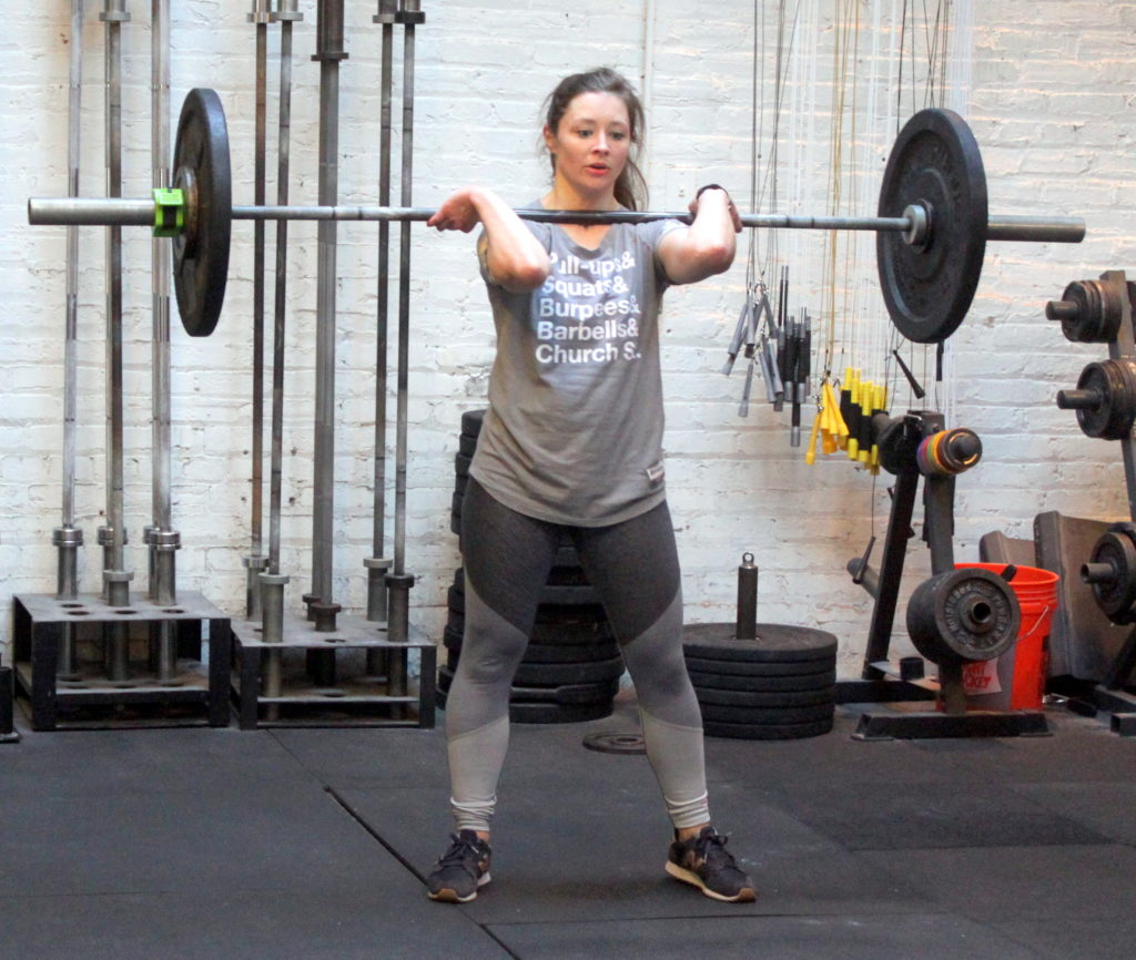 In Gym: 10 rounds for time: 7x toes-to-bar 10x weighted front rack lunge @ 115/75-lbs. At Home: 10 rounds for time: 7x virtual toes-to-bar 10x object front rack lunge –or– 20x lunge