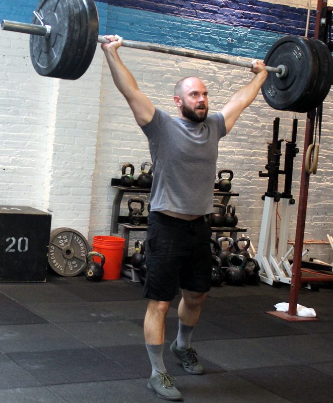 In Gym: six rounds, every two minutes: rounds 1-3: 3x overhead squat rounds 4-6: 2x snatch balance then, five rounds, every two minutes: 2x hang snatch At Home: four rounds for time: 15x devil’s press –or– (burpee + tuck jump) 15x single-arm snatch, right –or– 30x superman 15x single-arm snatch, left –or– 10x inchworm