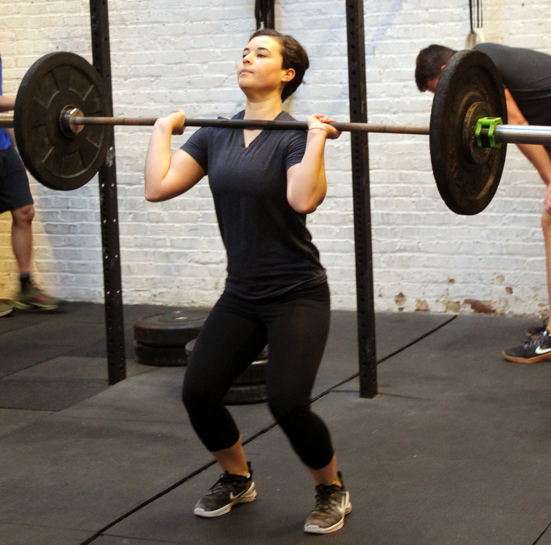 In Gym:five rounds for time:20x pushup20x front squat @ 95/65-lbs. At Home:five rounds for time:20x pushup20x object front squat –or– 25x squat with 1-second pause at bottom