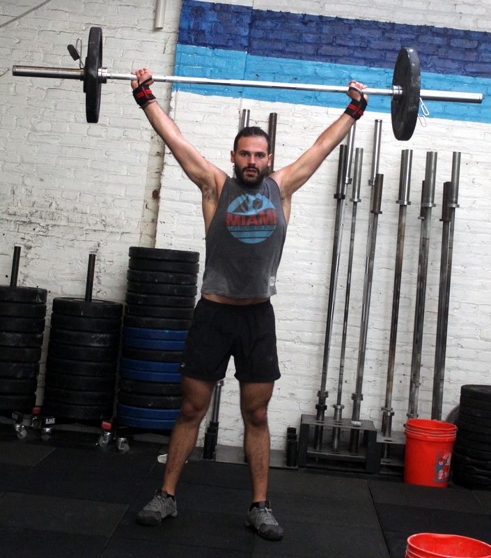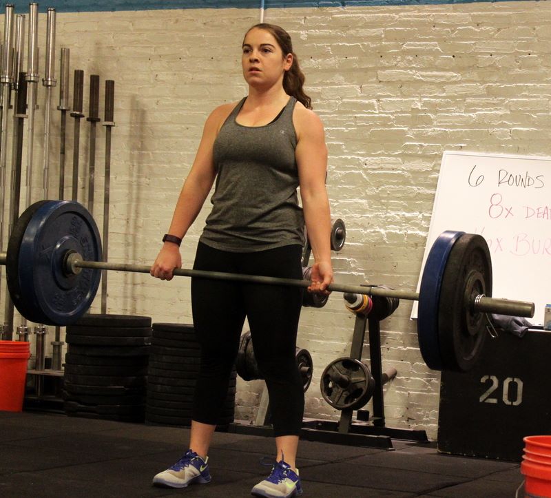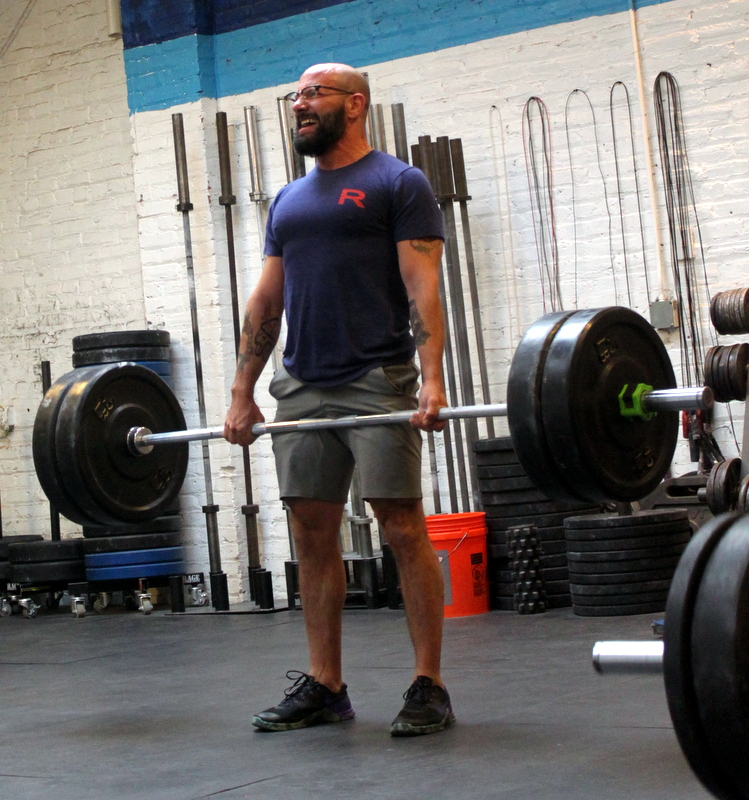 In Gym:power snatch + overhead squat1-1-1-1-1 *Begin each round every 90 seconds. power snatch + snatch1-1-1-1-1-1 *Begin each round every three minutes. At Home:complete six sets, starting every 90 seconds:4 per side: single-arm muscle snatch –or– 8 (sit-up + stand and jump) 8 standing long jumpthen, complete six sets, starting every 90 seconds:4-6 per side: […]