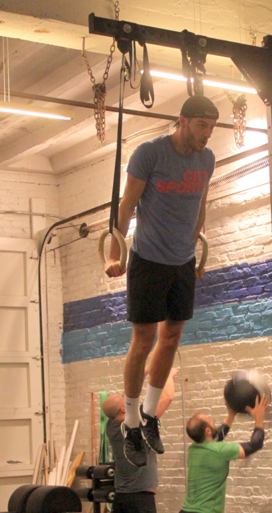 In Gym: 32 minutes, every minute, on-the-minute: minute 1: 2-5x rope climb, 12-ft. (standing start) minute 2: 10x dumbbell push press @ 50/35-lb. dbs minute 3: 20x single-arm snatch, 50/35-lbs. minute 4: rest At Home: 32 minutes, every minute, on-the-minute: minute 1: 8x per side of object bentover row –or– 16x pike-up minute 2: 10x […]
