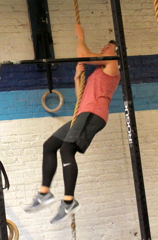 In Gym: five rounds for time: 36x double under 24x pushup 12x strict toes-to-bar At Home: five rounds for time: 36x lateral skater 24x pushup 12x virtual toes-to-bar