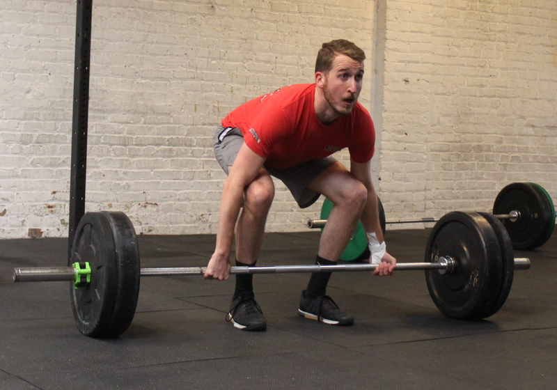 In Gym:for time:20-15-10-5hang power clean @ 135/95-lbs.(1 squat jump + 2 lunge jump) Then, take eight minutes to build up to a heavy hang power clean single for the day. At Home:for time:20-15-10-5-10dumbbell/object hang power clean –or– inchworm walkout(1 squat jump + 2 lunge jump)