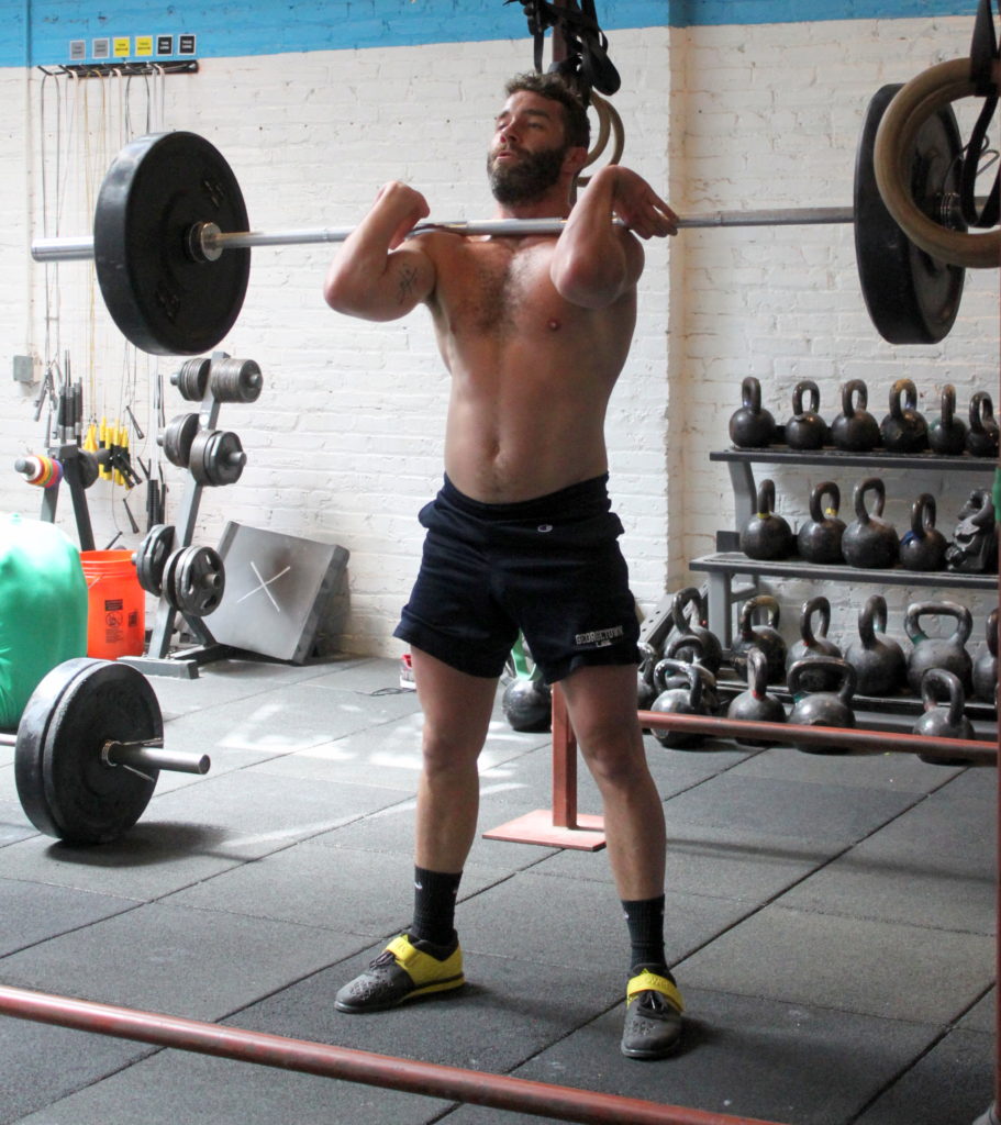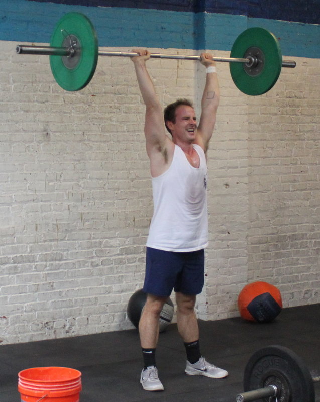 In Gym: seven rounds, every three minutes: 5x heavy push jerk then, five rounds, every two minutes: 5x dumbbell shoulder press 10x dumbbell push press 20-second hollow hold At Home: 10 rounds, every two minutes: 5-10x pushup 5x dumbbell shoulder press –or– atomic pushup 5-10x dumbbell push press –or– staggered grip pushup 20-second hollow hold